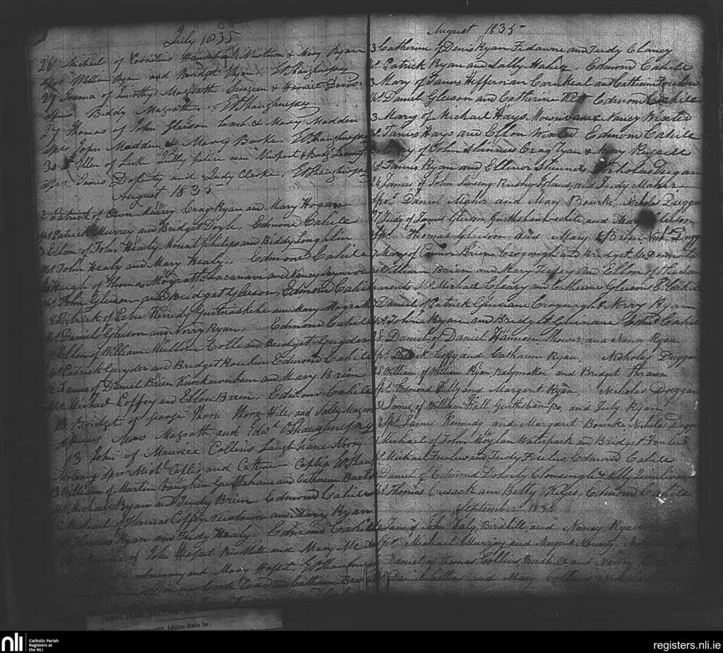 Newport; County of Tipperary; Diocese of Cashel and Emly. Baptisms, July 1835 to Sep. 1835