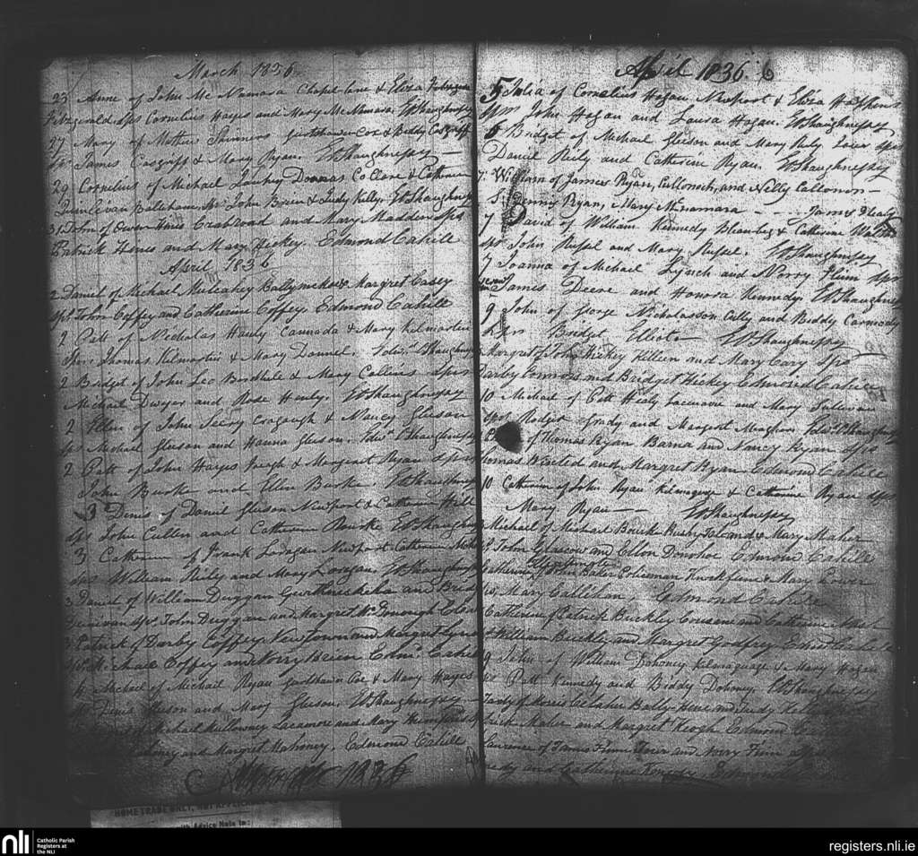 Newport; County of Tipperary; Diocese of Cashel and Emly. Baptisms, Mar. 1836 to Apr. 1836