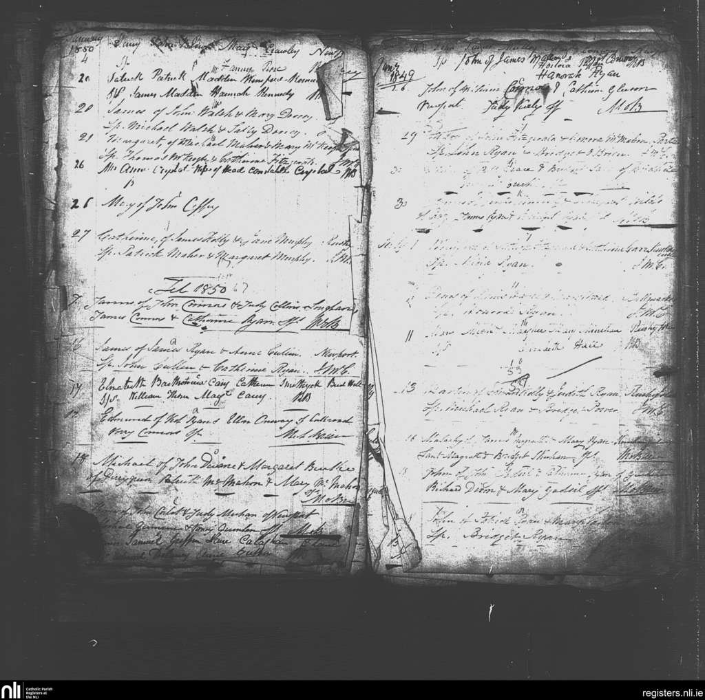 Newport; County of Tipperary; Diocese of Cashel and Emly. Baptisms, June 1849 to Feb. 1850