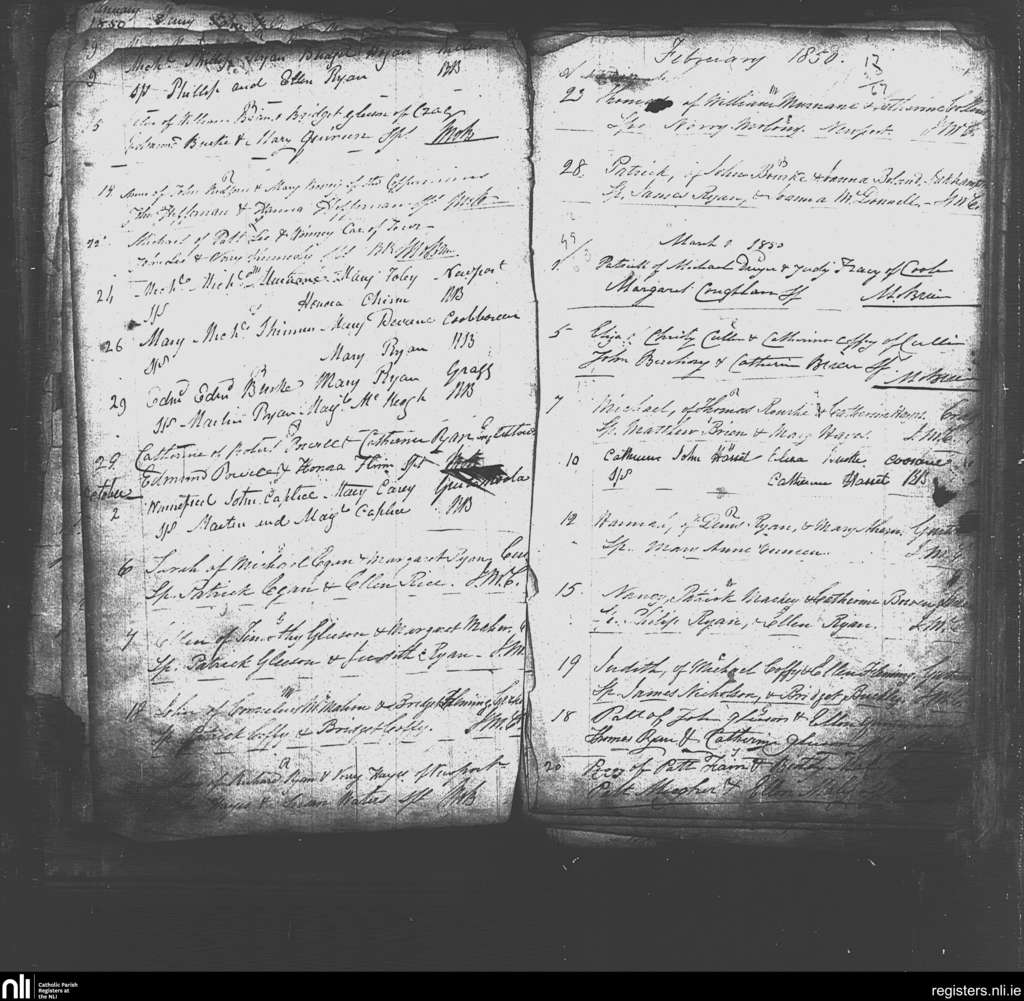 Newport; County of Tipperary; Diocese of Cashel and Emly. Baptisms, Feb. 1850 to Oct. 1850