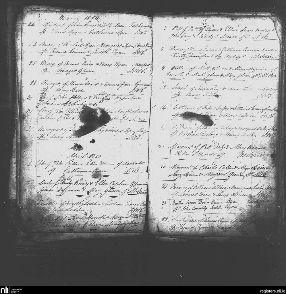 Newport; County of Tipperary; Diocese of Cashel and Emly. Baptisms, Mar. 1850 to Apr. 1850