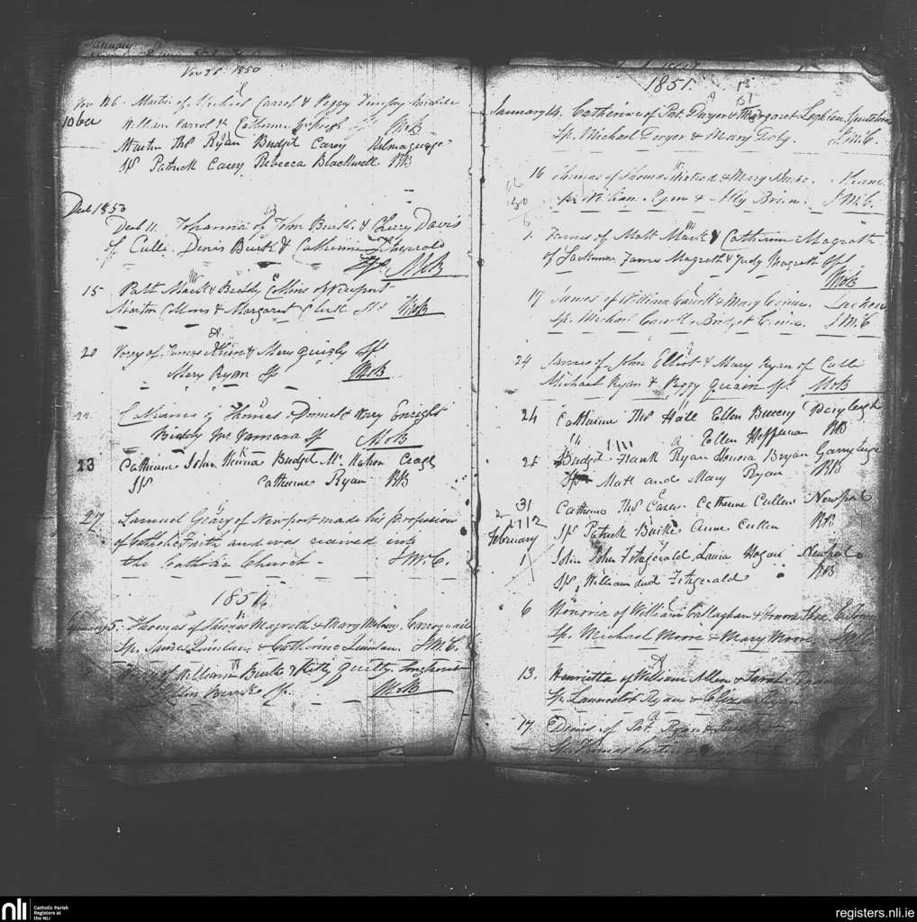 Newport; County of Tipperary; Diocese of Cashel and Emly. Baptisms, Nov. 1850 to Feb. 1851