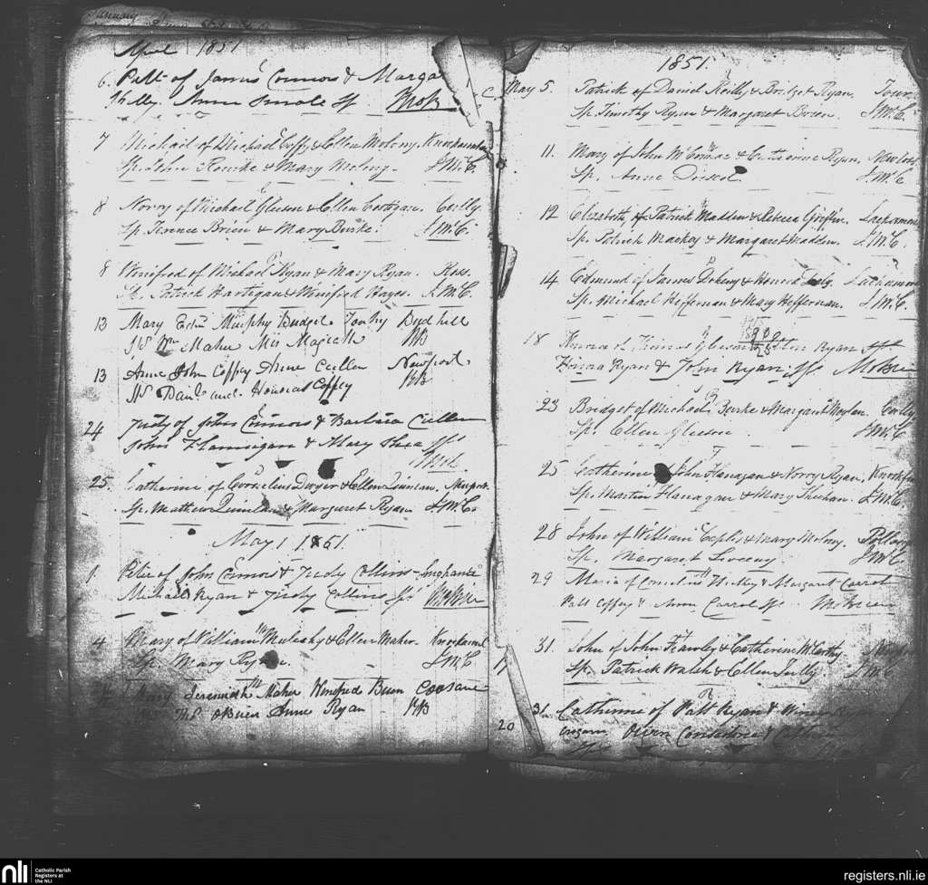 Newport; County of Tipperary; Diocese of Cashel and Emly. Baptisms, Apr. 1851 to May 1851