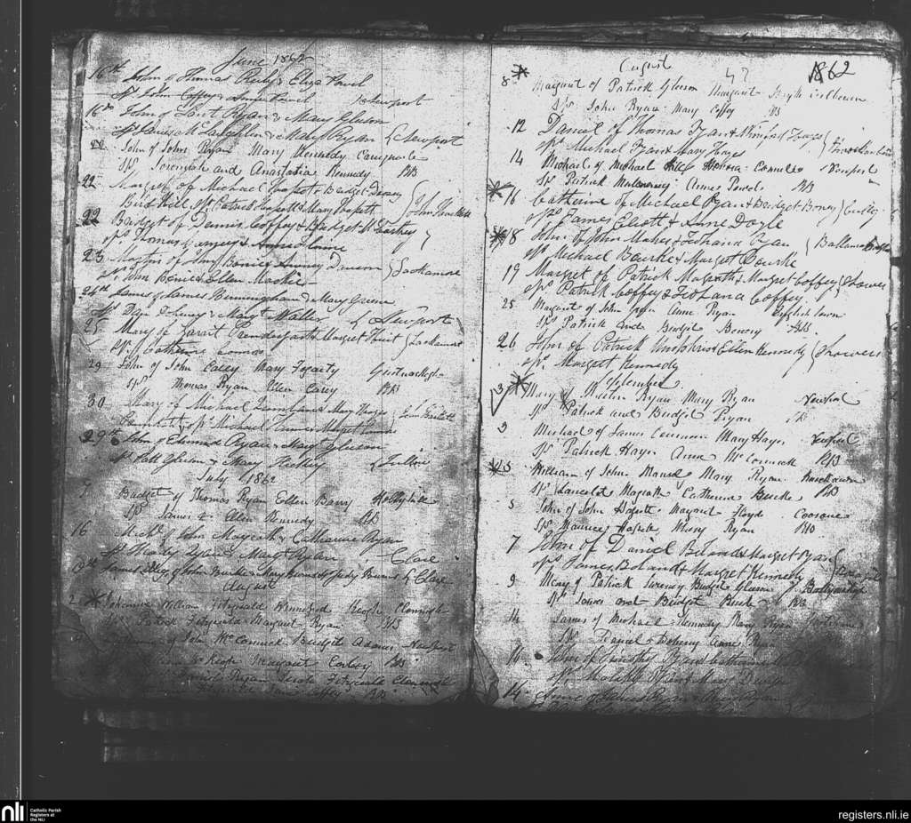 Newport; County of Tipperary; Diocese of Cashel and Emly. Baptisms, June 1862 to Sep. 1862