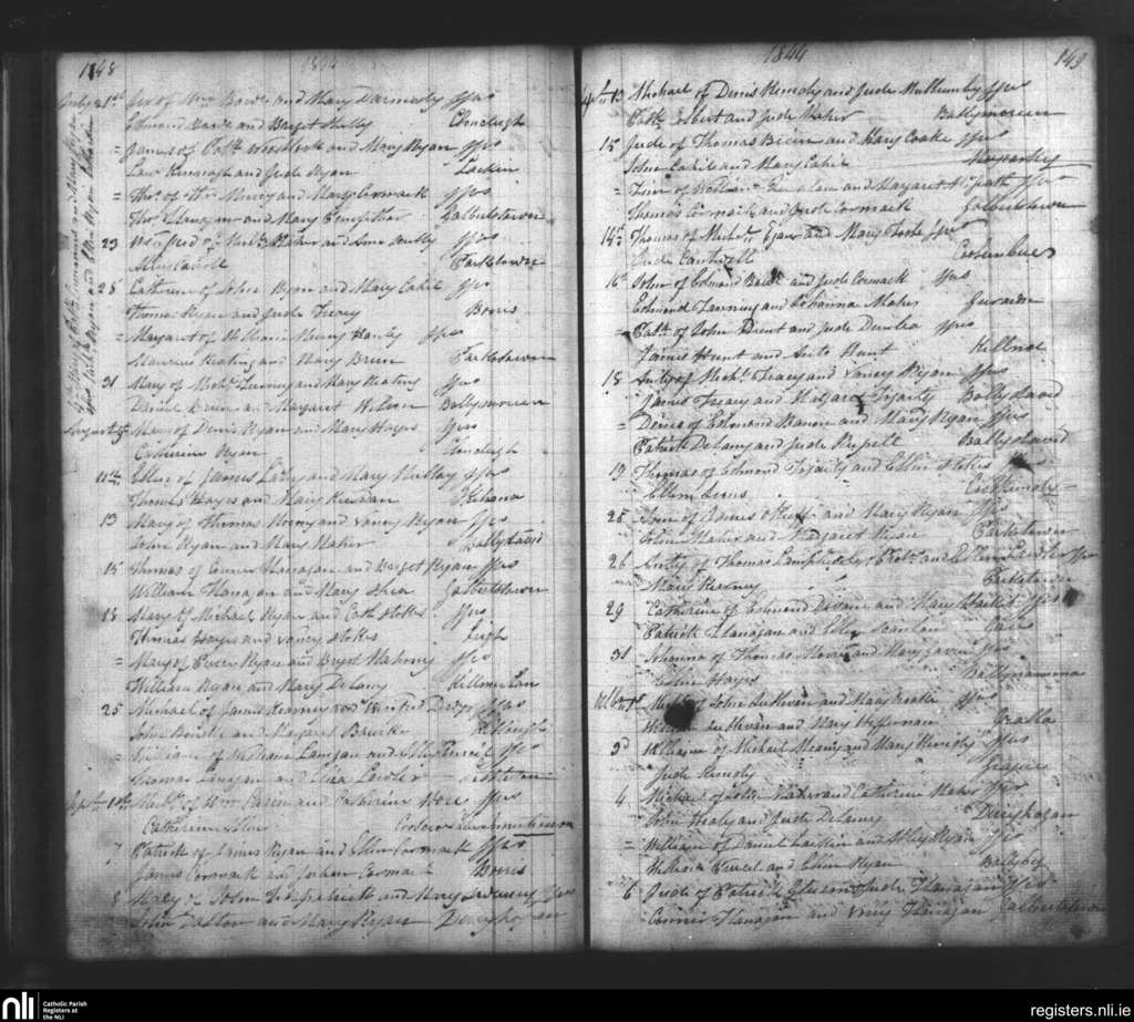 Moycarkey; County of Tipperary; Diocese of Cashel and Emly. Baptisms, July 1844 to Oct. 1844
