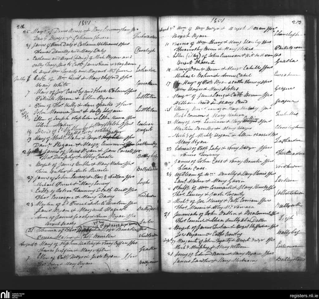 Moycarkey; County of Tipperary; Diocese of Cashel and Emly. Baptisms, June 1851 to Sep. 1851