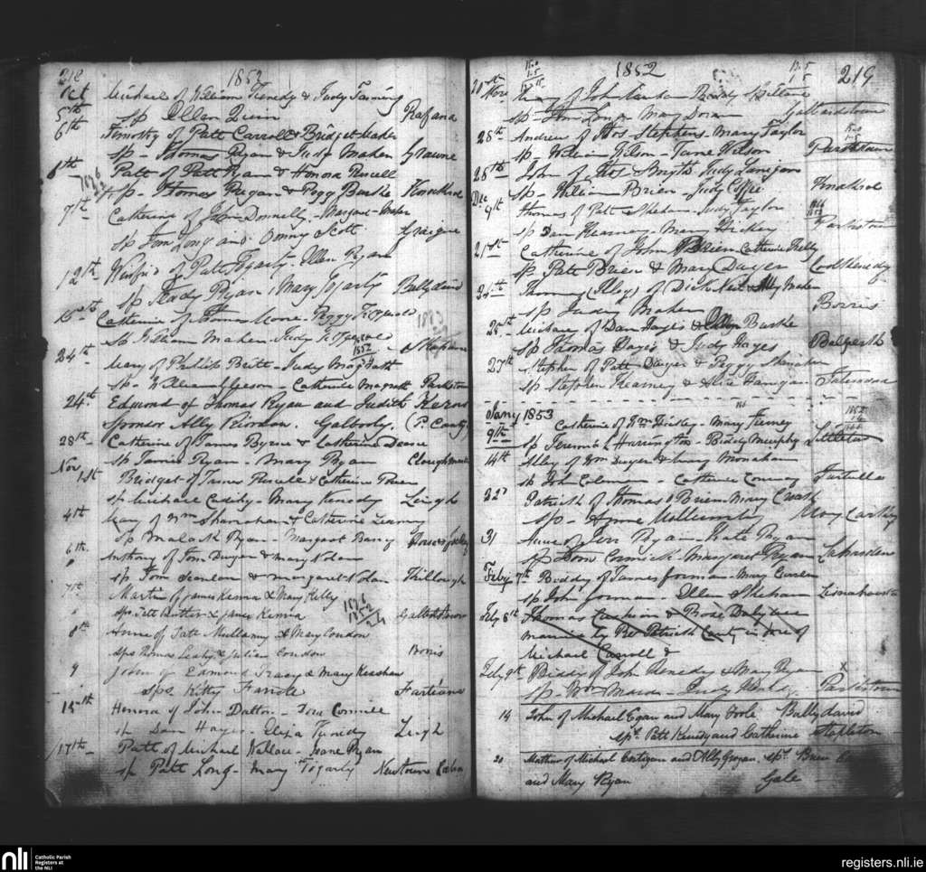 Moycarkey; County of Tipperary; Diocese of Cashel and Emly. Baptisms, Oct. 1852 to Feb. 1853