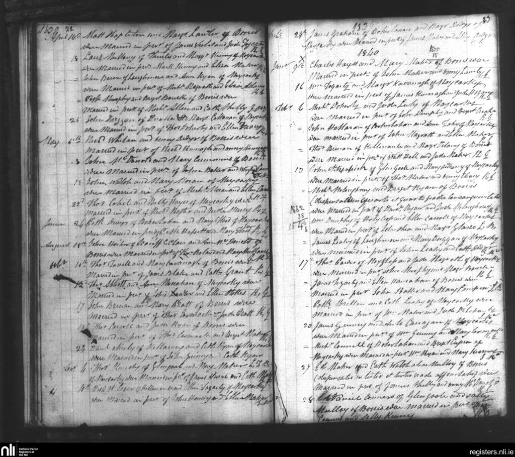 Moycarkey; County of Tipperary; Diocese of Cashel and Emly. Marriages, Apr. 1839 to Feb. 1840