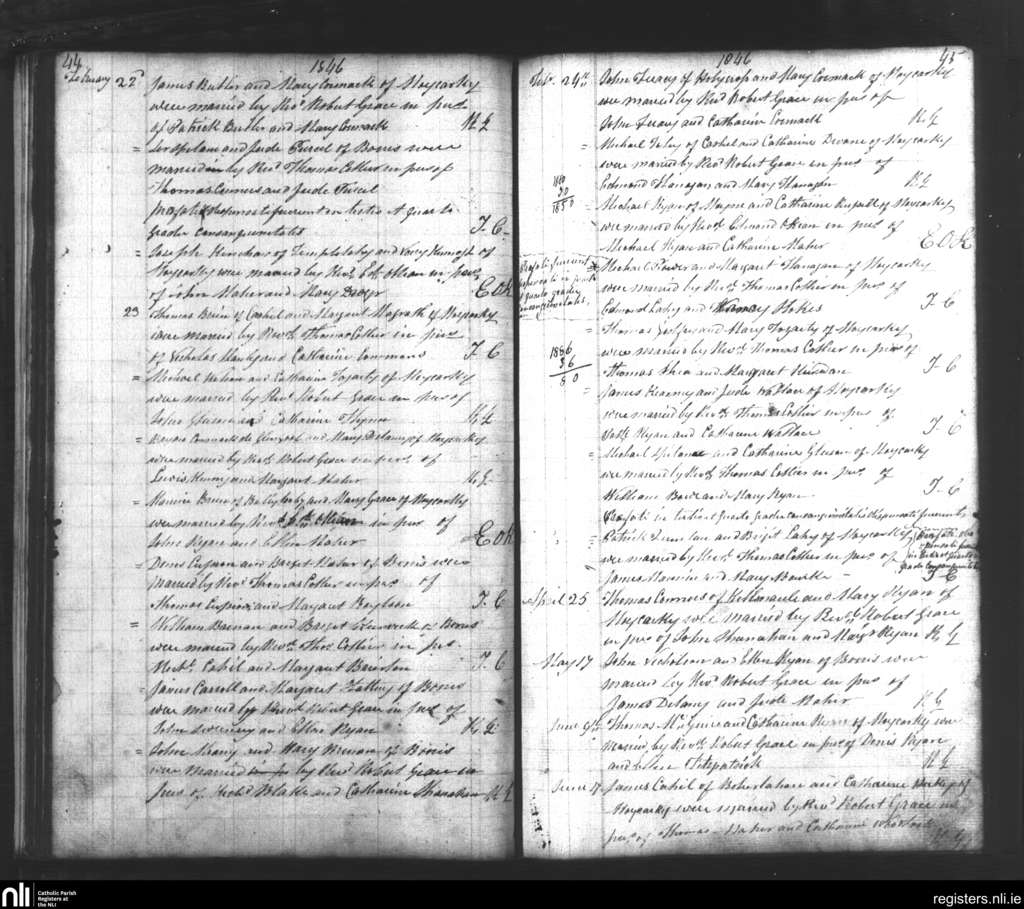 Moycarkey; County of Tipperary; Diocese of Cashel and Emly. Marriages, Feb. 1846 to June 1846