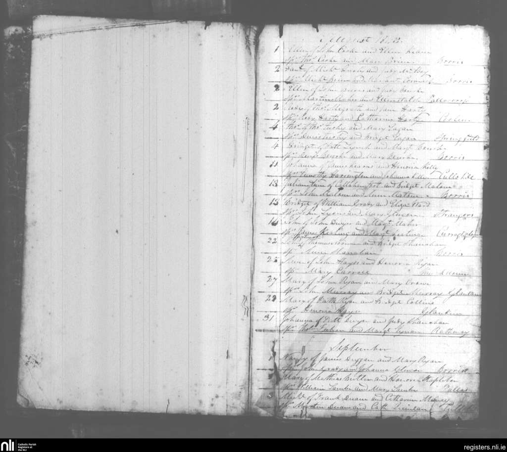 Borrisoleigh; County of Tipperary; Diocese of Cashel and Emly. Baptisms, Aug. 1843 to Sep. 1843