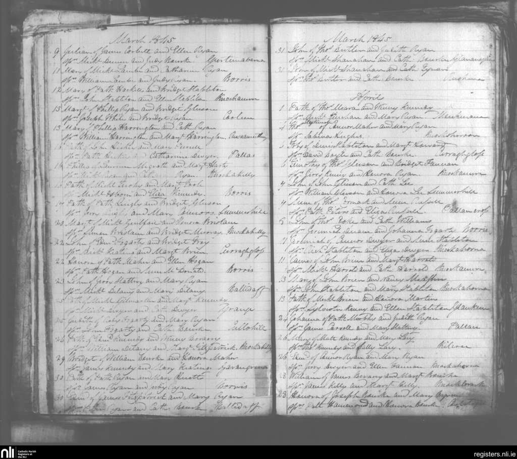 Borrisoleigh; County of Tipperary; Diocese of Cashel and Emly. Baptisms, Mar. 1845 to Apr. 1845