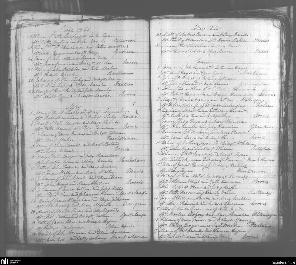 Borrisoleigh; County of Tipperary; Diocese of Cashel and Emly. Baptisms, Apr. 1845 to June 1845