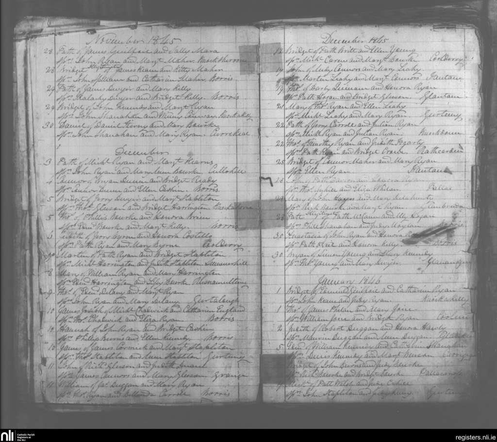 Borrisoleigh; County of Tipperary; Diocese of Cashel and Emly. Baptisms, Nov. 1845 to Jan. 1846