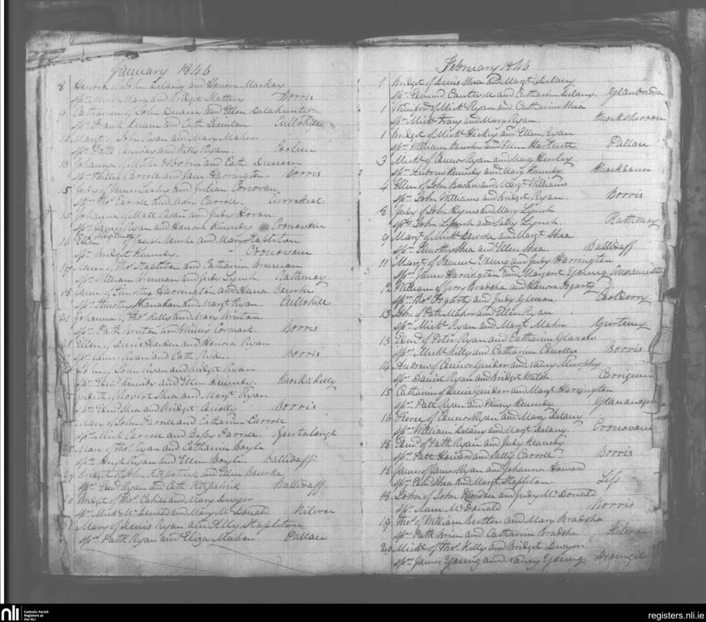 Borrisoleigh; County of Tipperary; Diocese of Cashel and Emly. Baptisms, Jan. 1846 to Feb. 1846