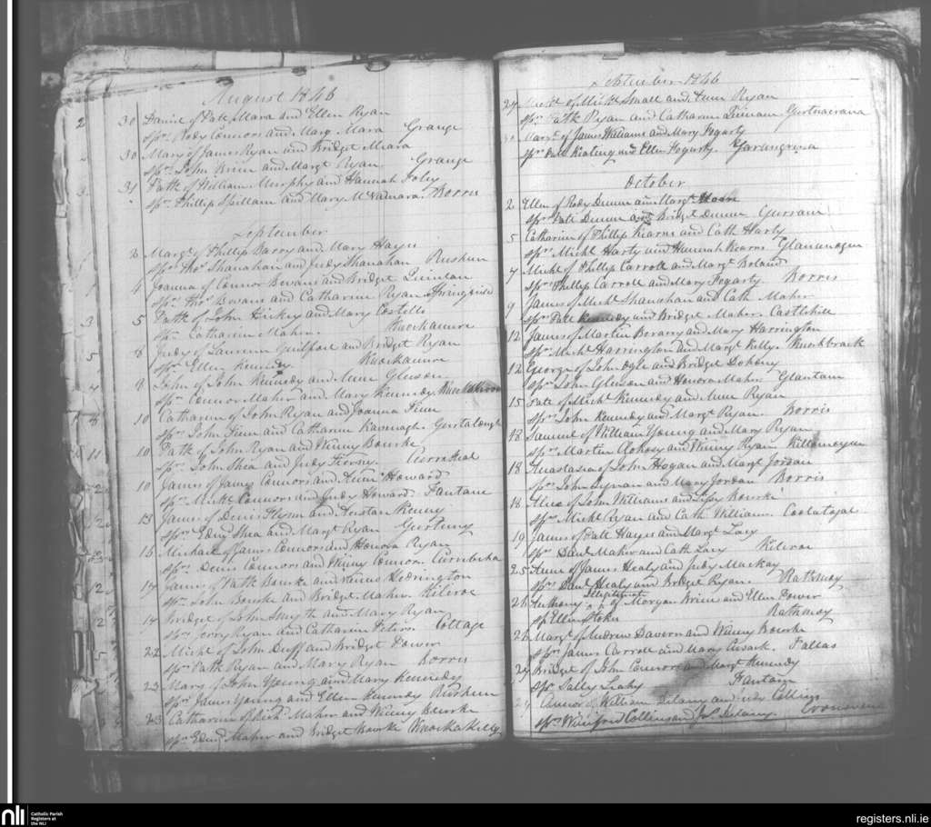 Borrisoleigh; County of Tipperary; Diocese of Cashel and Emly. Baptisms, Aug. 1846 to Oct. 1846