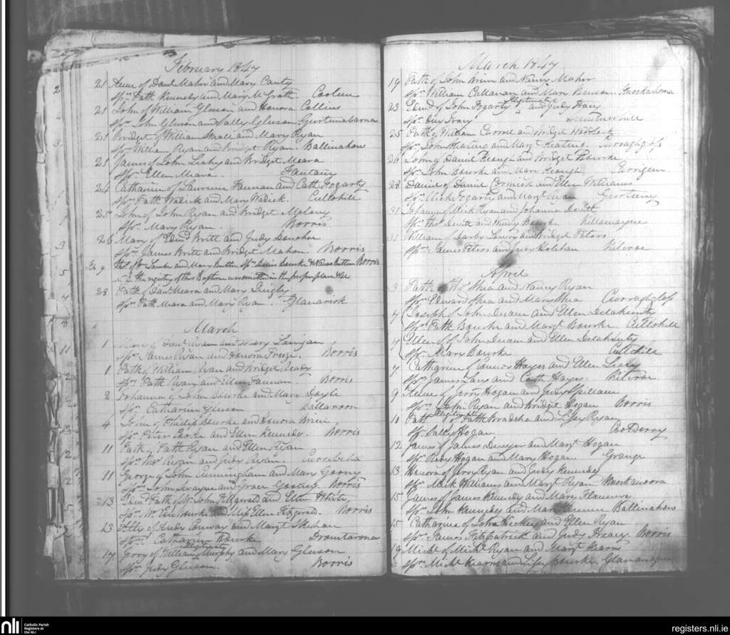 Borrisoleigh; County of Tipperary; Diocese of Cashel and Emly. Baptisms, Feb. 1847 to Apr. 1847