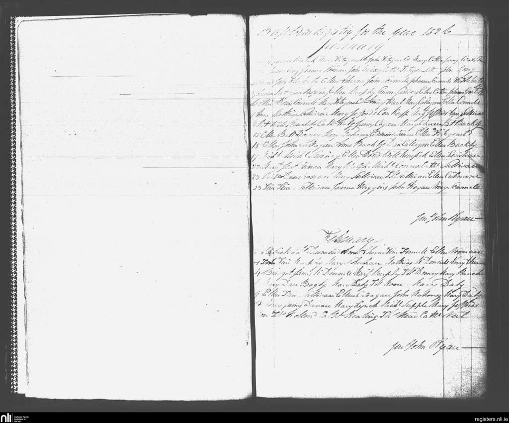 Carrigaline; County of Cork; Diocese of Cork and Ross. Baptisms, Jan. 1826 to Feb. 1826