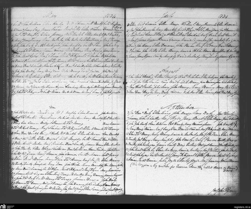 Carrigaline; County of Cork; Diocese of Cork and Ross. Baptisms, May 1834 to Sep. 1834