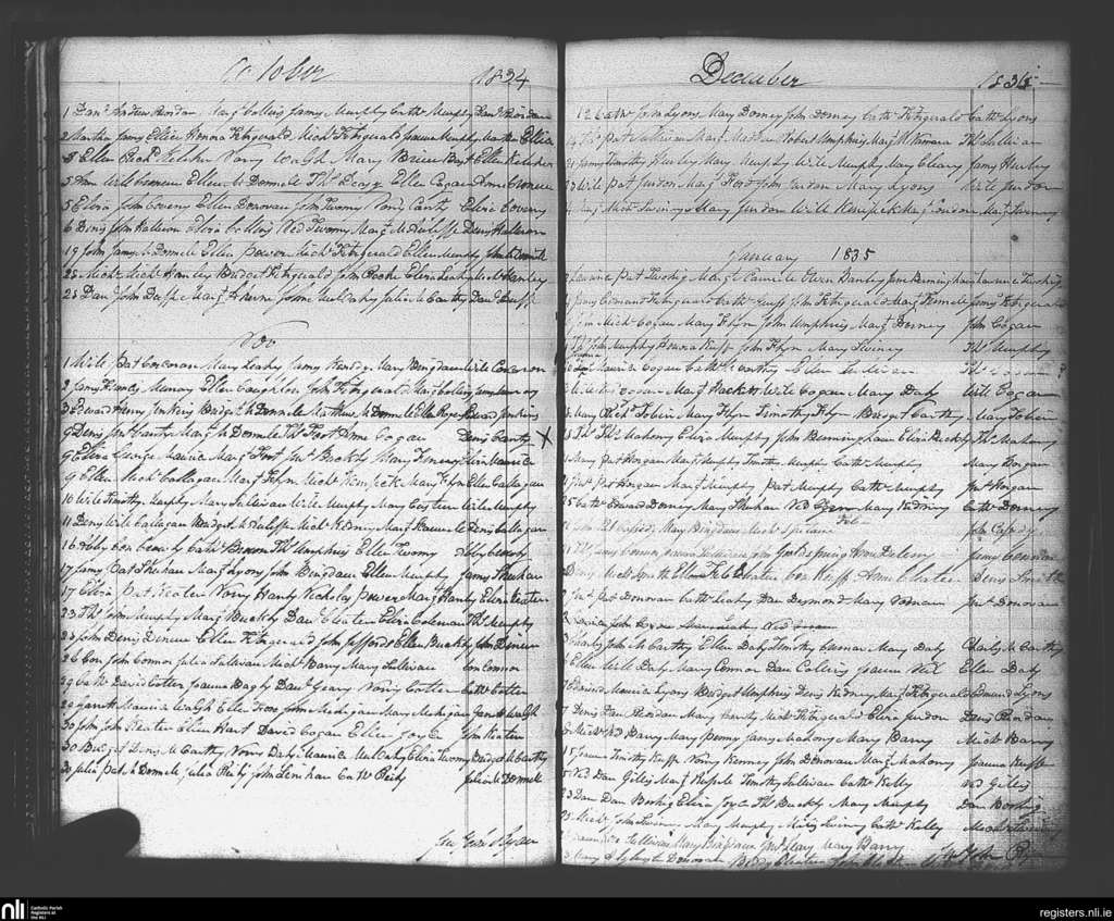 Carrigaline; County of Cork; Diocese of Cork and Ross. Baptisms, Oct. 1834 to Jan. 1835