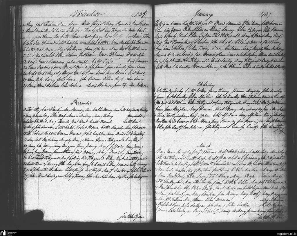 Carrigaline; County of Cork; Diocese of Cork and Ross. Baptisms, Nov. 1836 to Mar. 1837