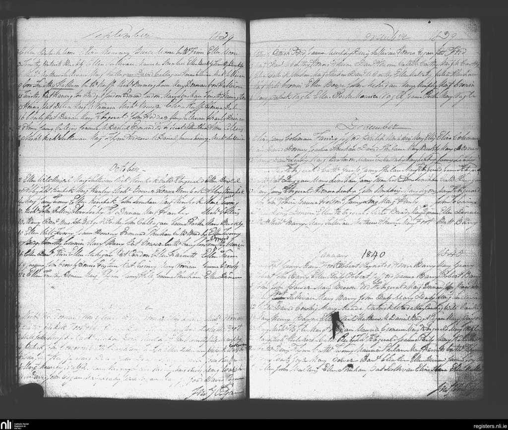 Carrigaline; County of Cork; Diocese of Cork and Ross. Baptisms, Sep. 1839 to Jan. 1840