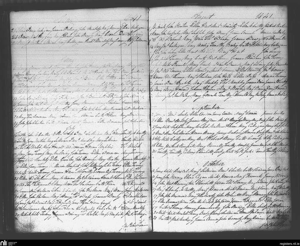 Carrigaline; County of Cork; Diocese of Cork and Ross. Baptisms, May 1841 to Oct. 1841