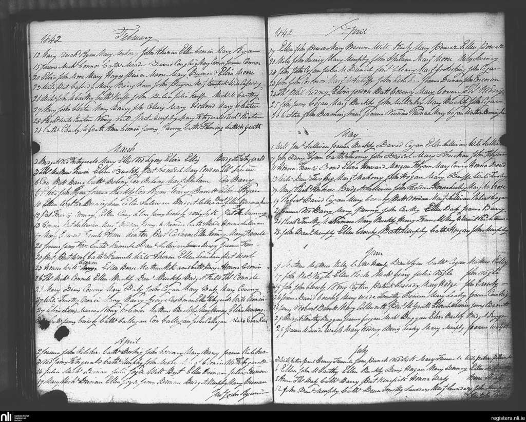 Carrigaline; County of Cork; Diocese of Cork and Ross. Baptisms, Feb. 1842 to July 1842