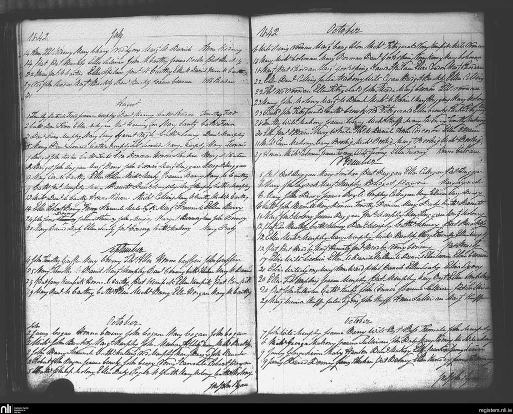 Carrigaline; County of Cork; Diocese of Cork and Ross. Baptisms, July 1842 to Nov. 1842