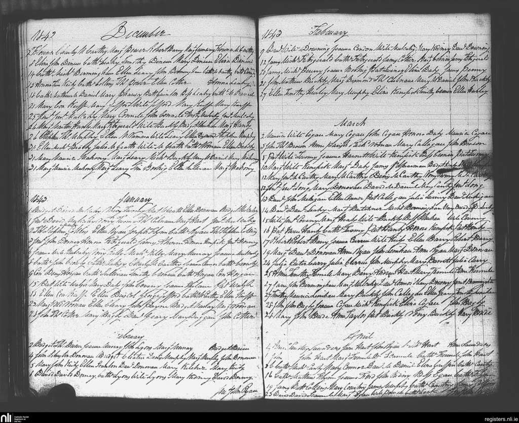Carrigaline; County of Cork; Diocese of Cork and Ross. Baptisms, Dec. 1842 to Apr. 1843