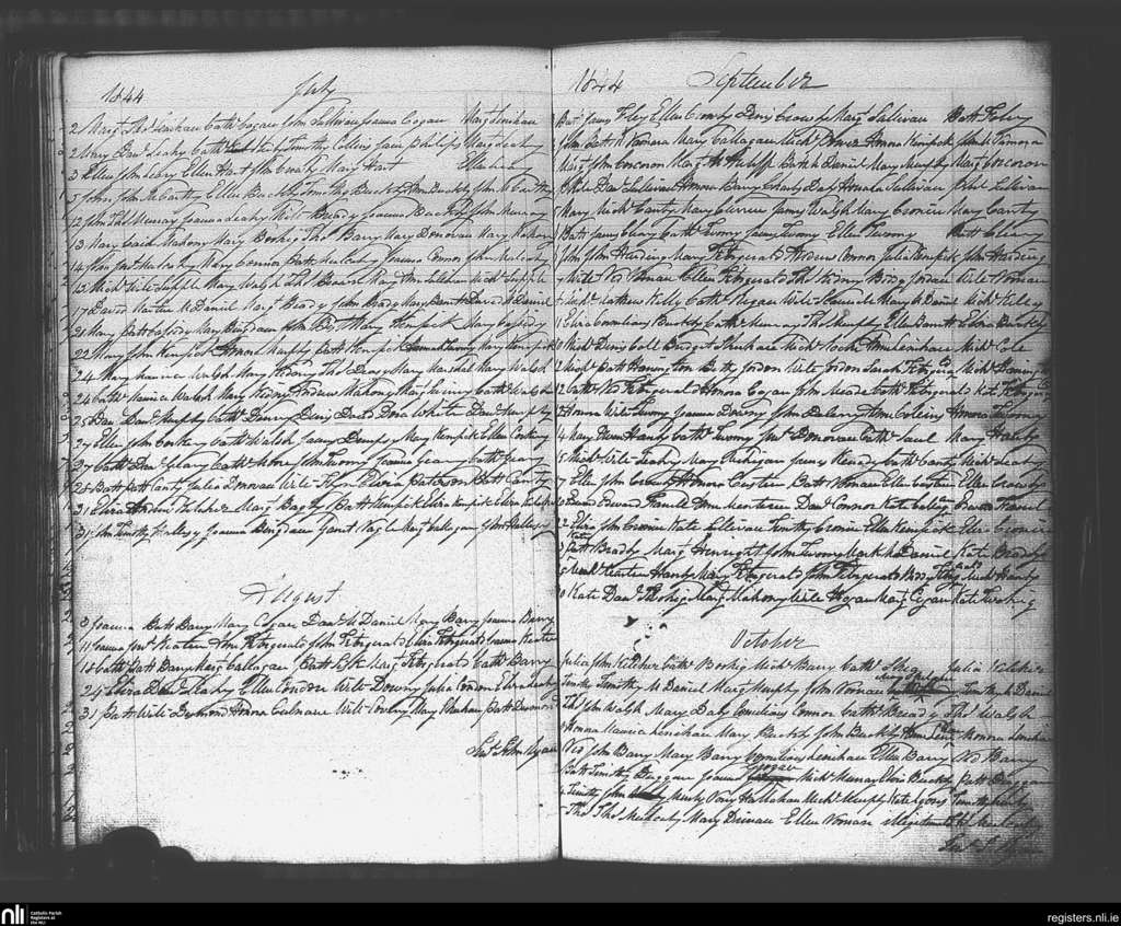 Carrigaline; County of Cork; Diocese of Cork and Ross. Baptisms, July 1844 to Oct. 1844