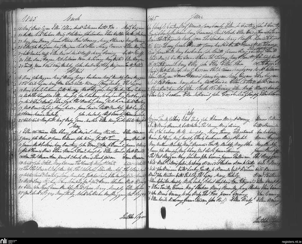 Carrigaline; County of Cork; Diocese of Cork and Ross. Baptisms, Mar. 1845 to July 1845