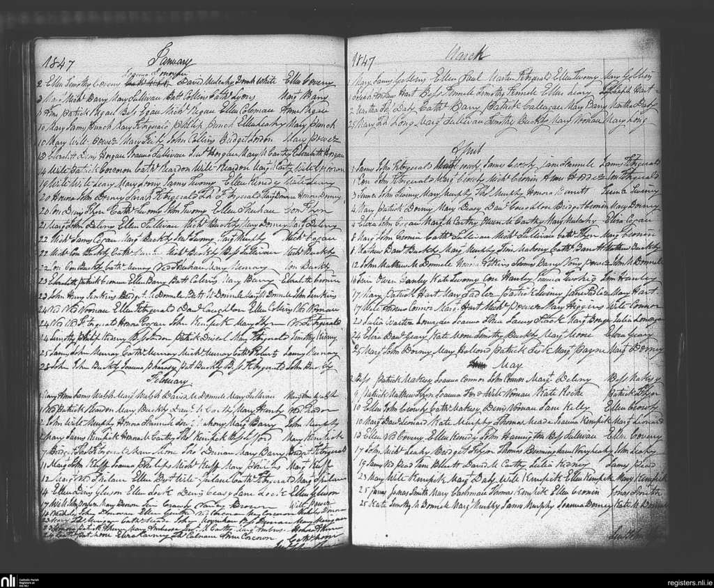 Carrigaline; County of Cork; Diocese of Cork and Ross. Baptisms, Jan. 1847 to May 1847