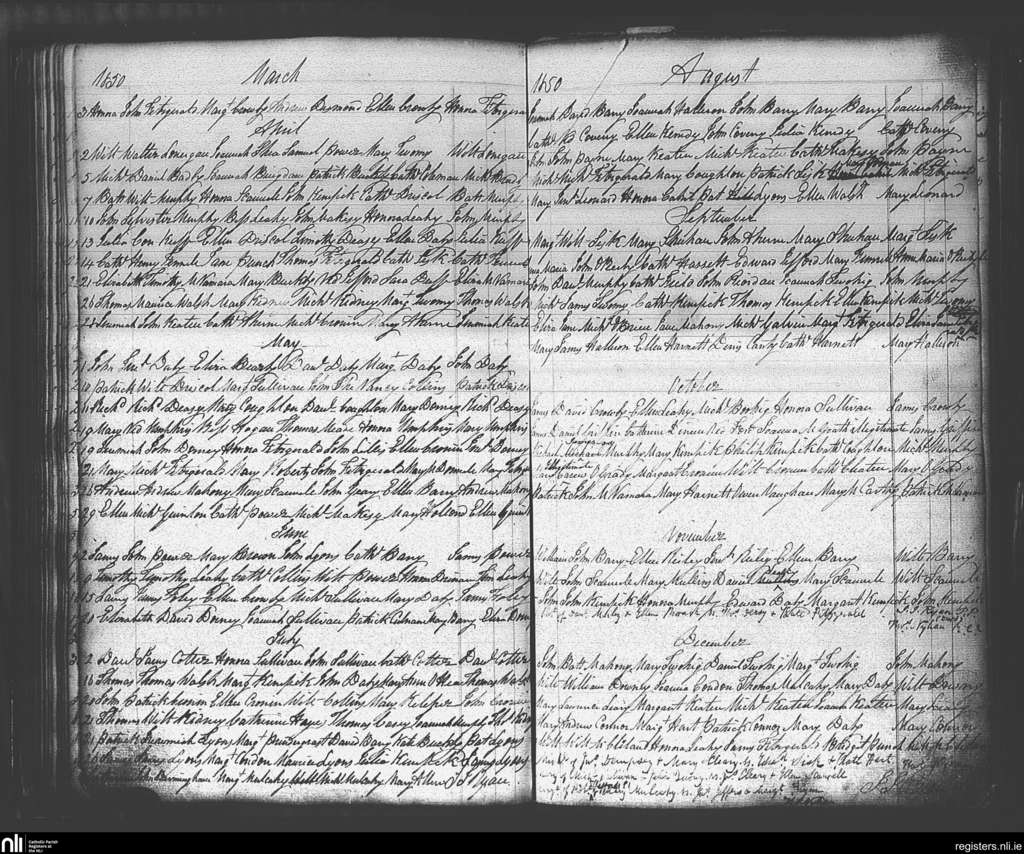 Carrigaline; County of Cork; Diocese of Cork and Ross. Baptisms, Mar. 1850 to Dec. 1850