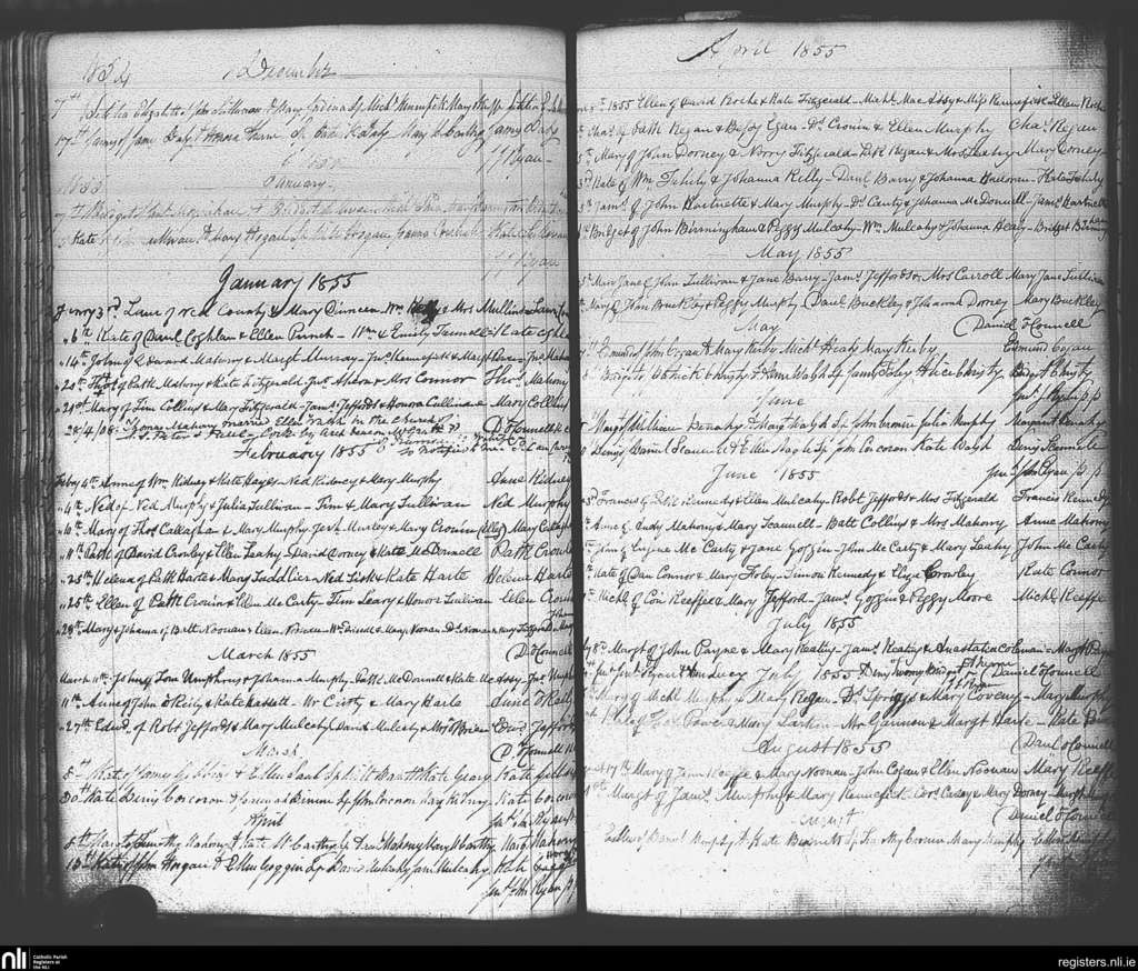 Carrigaline; County of Cork; Diocese of Cork and Ross. Baptisms, Dec. 1854 to Aug. 1855