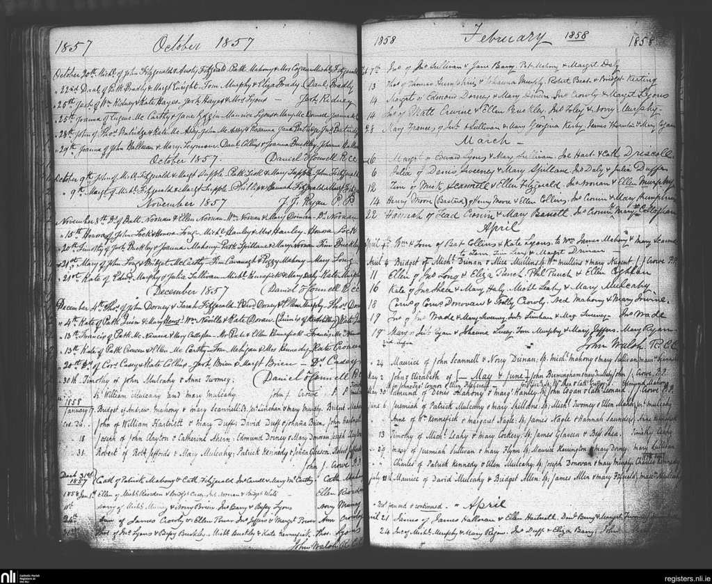 Carrigaline; County of Cork; Diocese of Cork and Ross. Baptisms, Oct. 1857 to July 1858
