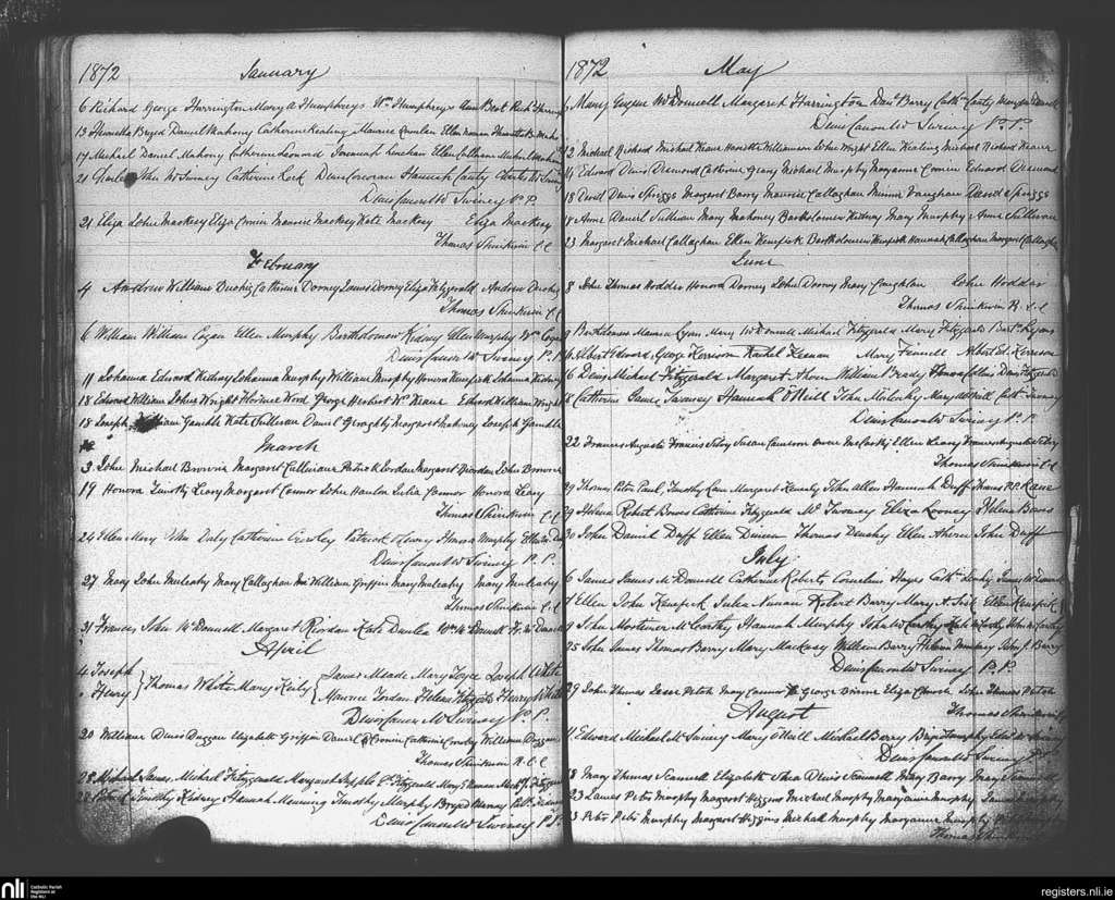 Carrigaline; County of Cork; Diocese of Cork and Ross. Baptisms, Jan. 1872 to Aug. 1872