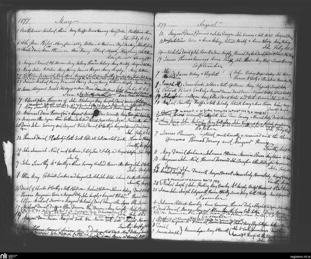 Carrigaline; County of Cork; Diocese of Cork and Ross. Baptisms, Marriages, May 1877 to Apr. 1927