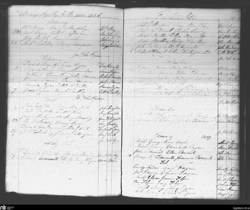 Carrigaline; County of Cork; Diocese of Cork and Ross. Marriages, Jan. 1826 to Feb. 1827