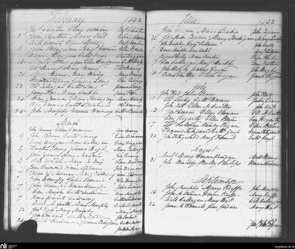 Carrigaline; County of Cork; Diocese of Cork and Ross. Marriages, Feb. 1832 to Sep. 1832