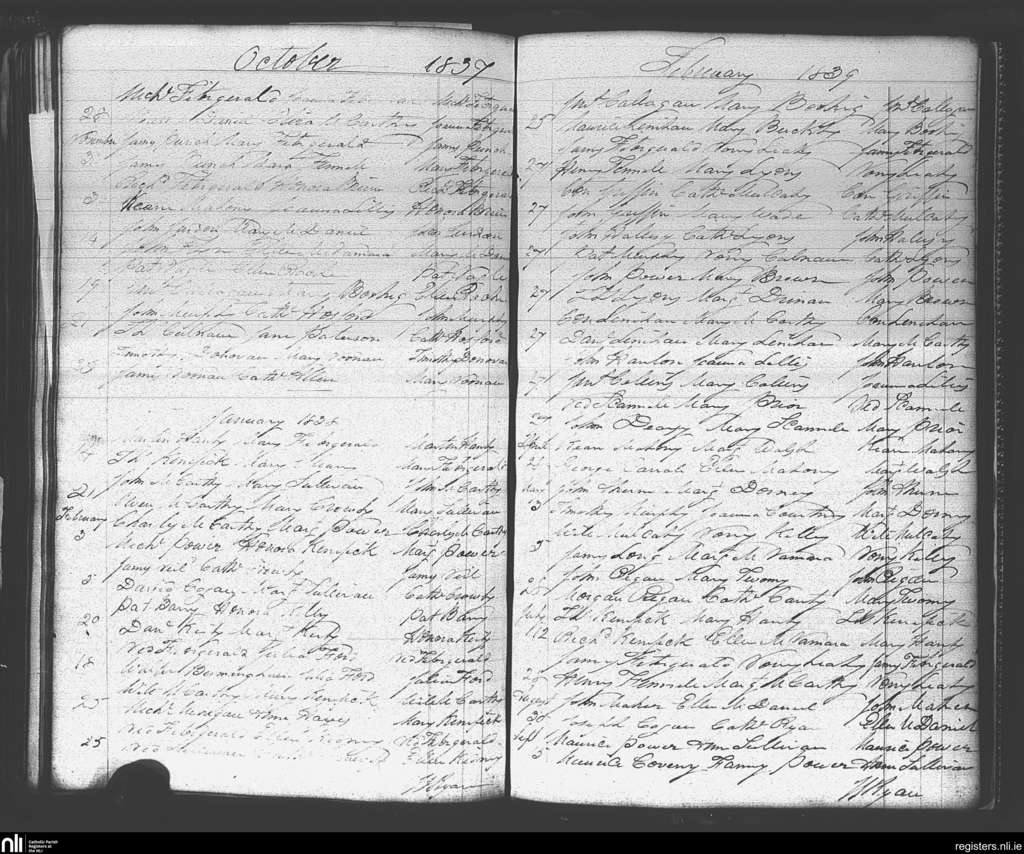 Carrigaline; County of Cork; Diocese of Cork and Ross. Marriages, Oct. 1837 to Sep. 1839