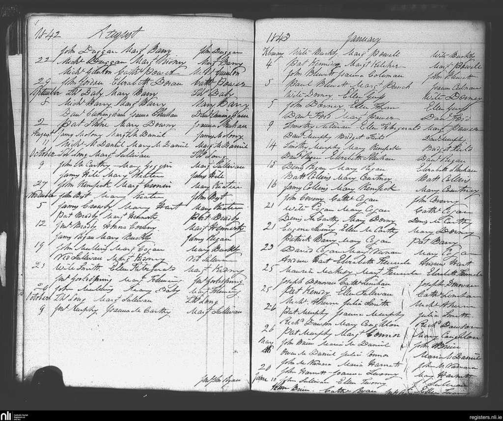 Carrigaline; County of Cork; Diocese of Cork and Ross. Marriages, Aug. 1842 to June 1843