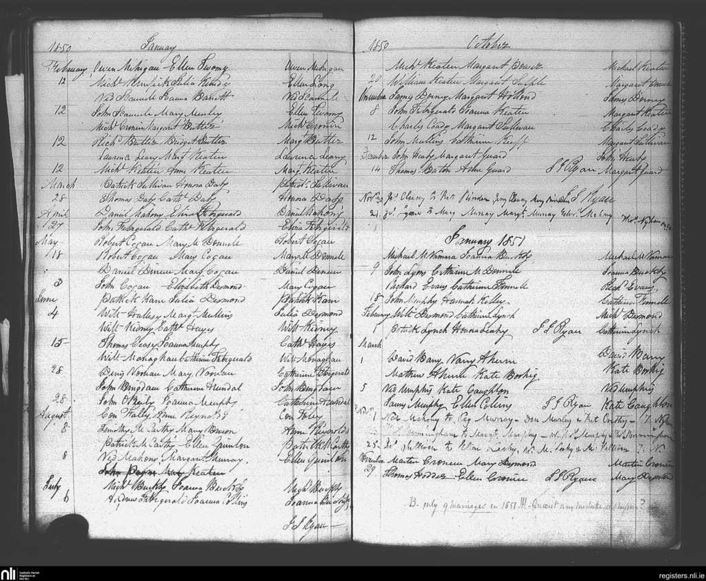 Carrigaline; County of Cork; Diocese of Cork and Ross. Marriages, Feb. 1850 to Nov. 1851
