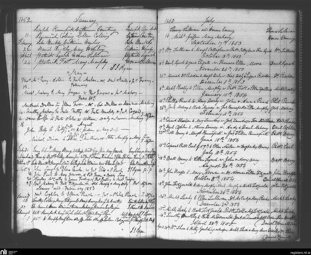 Carrigaline; County of Cork; Diocese of Cork and Ross. Marriages, Jan. 1852 to Apr. 1855