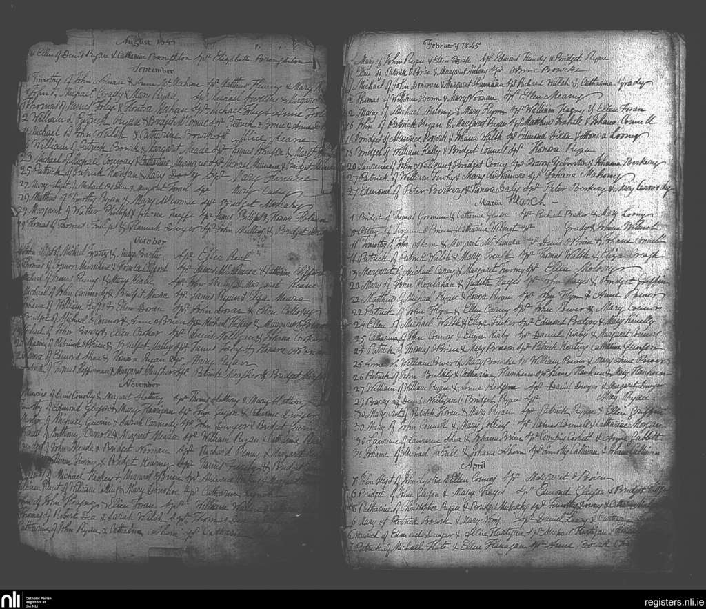 Caherconlish; County of Limerick; Diocese of Cashel and Emly. Baptisms, Aug. 1844 to Apr. 1845