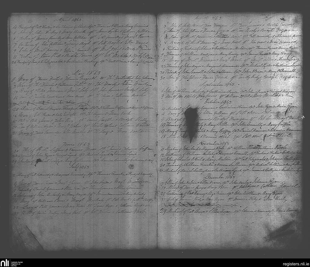 Caherconlish; County of Limerick; Diocese of Cashel and Emly. Baptisms, Apr. 1863 to Dec. 1863