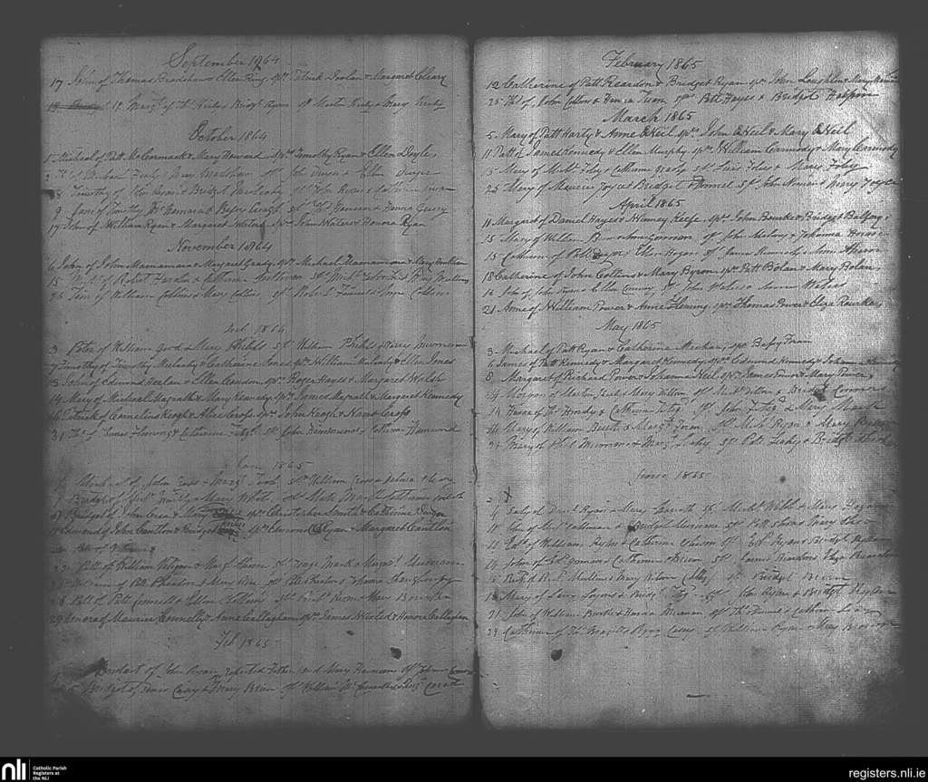 Caherconlish; County of Limerick; Diocese of Cashel and Emly. Baptisms, Sep. 1864 to June 1865
