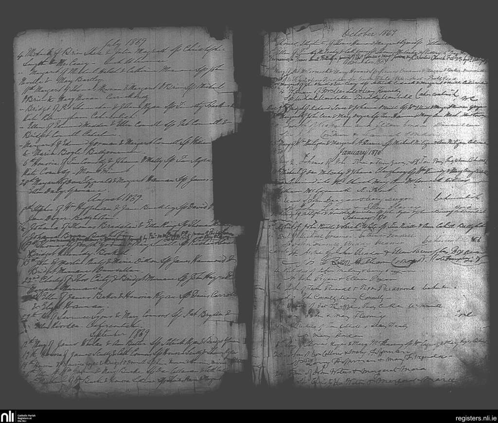 Caherconlish; County of Limerick; Diocese of Cashel and Emly. Baptisms, July 1869 to Feb. 1870