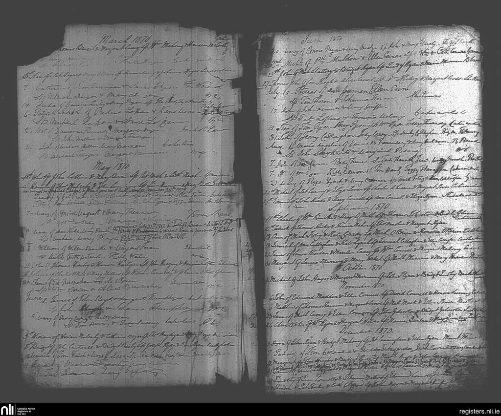 Caherconlish; County of Limerick; Diocese of Cashel and Emly. Baptisms, Mar. 1870 to Dec. 1870