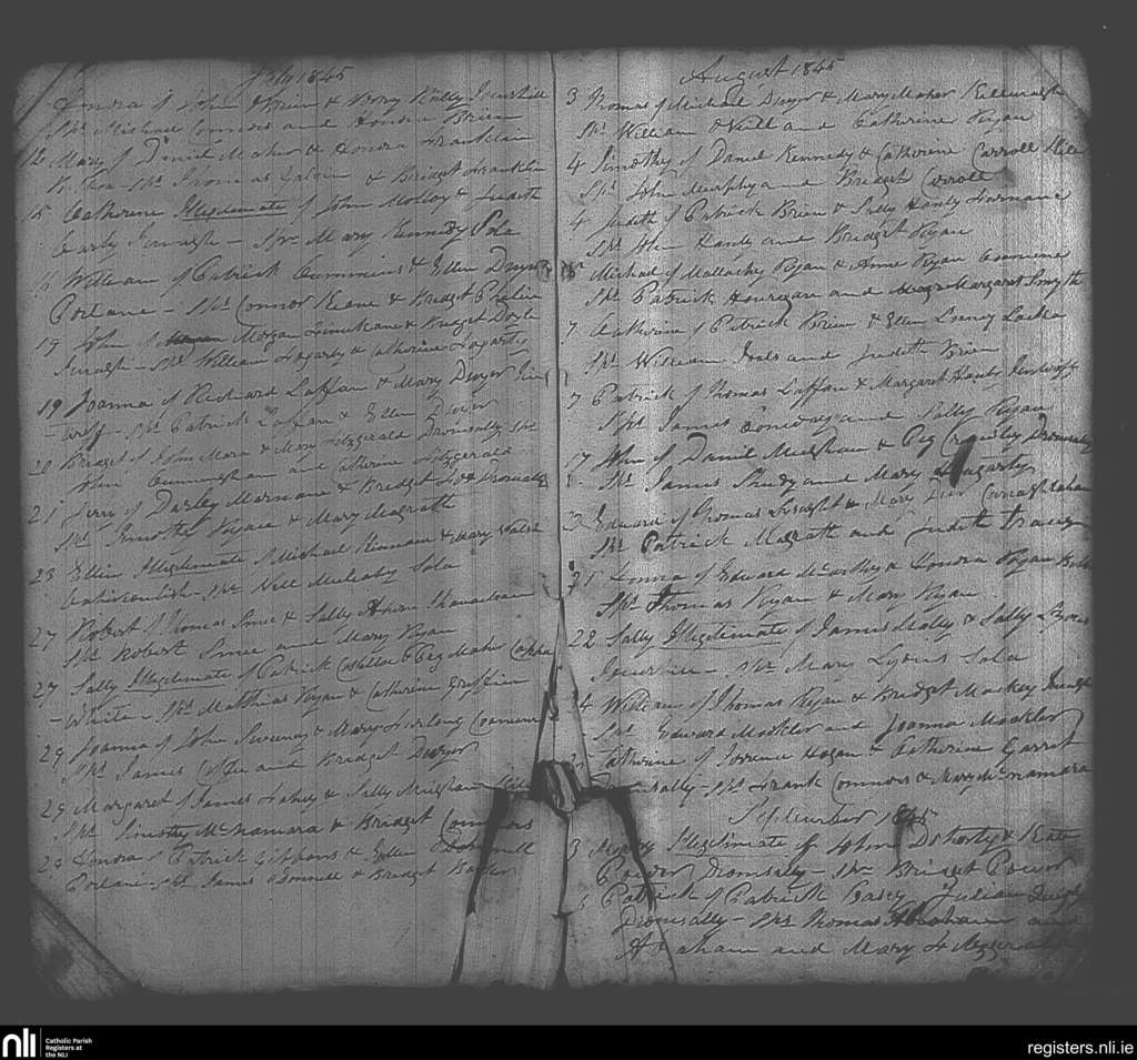 Cappamore; County of Limerick; Diocese of Cashel and Emly. Baptisms, July 1845 to Sep. 1845