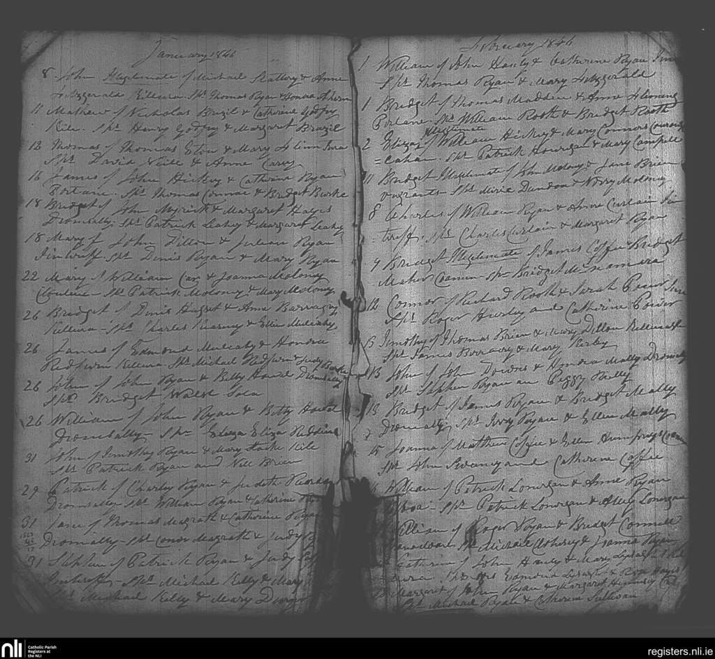 Cappamore; County of Limerick; Diocese of Cashel and Emly. Baptisms, Jan. 1846 to Feb. 1846